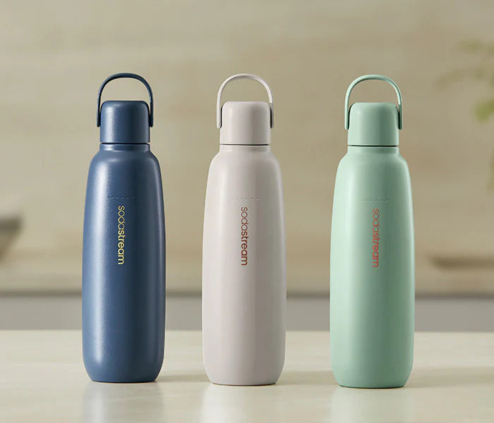 SodaStream fizz&go Stainless Steel on ruostumattomasta teräksestä valmistettu eristävä pullo, joka pitää juoman lämpötilan jopa 12 tuntia. Se on konepesun kestävä ja siinä on pehmeä kahva, joka helpottaa kuljettamista.